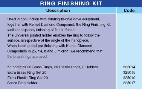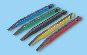 An inexpensive hand tool to complement our range of other precision surface finishing products.Each plastic holder 1/4’’-6.25mm, 1/2’’-12.5mm & 3/4’’-18.75mm, allows a narrow abrasive belt to be quickly fitted. As the abrasive wears, the belt can be easily inched round to expose fresh abrasive.The overall design of this tool makes it extremely useful for the dressing of irregular profiles.The holders are colour coded to promote correlation with different abrasives, red (120 grit), blue (240 grit, green (320 grit) yellow (400 grit) and black (600 grit).