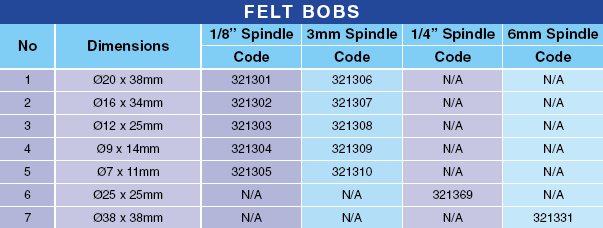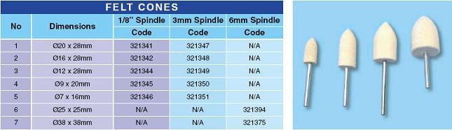 ![]() Felt Accessories are made from pure wool in a variety of sizes and shapes suitable for final polishing operations. |