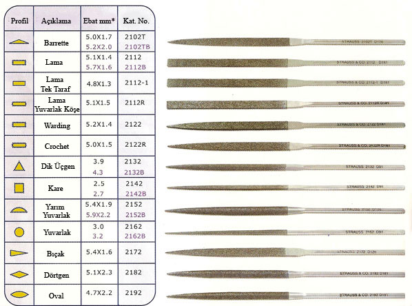 Ebat : ??ne e?eler 2 ?e?ittir. : NF - Toplam Uzunluk 140mm. Elmas uzunlu?u 70mm. NFB - Toplam Uzunluk 160mm. Elmas uzunlu?u 85mm. |